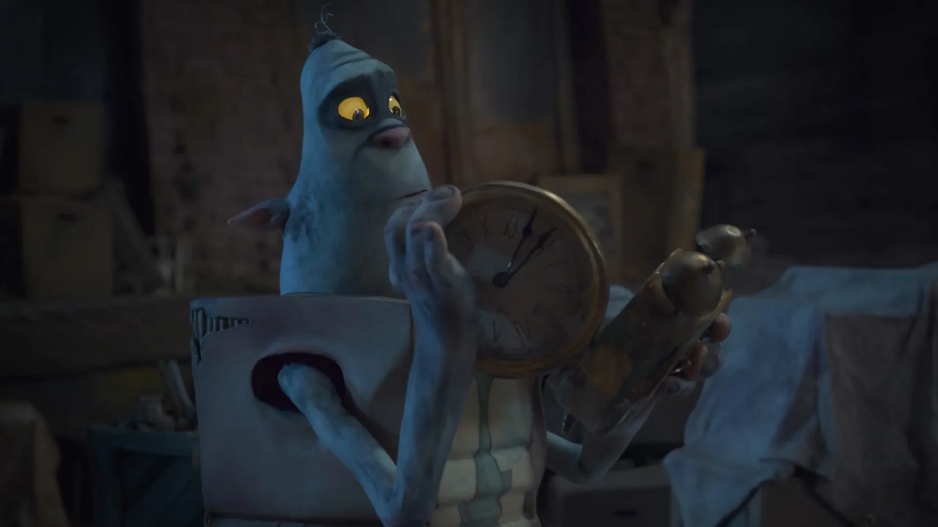 Cast: Ben Kingsley as Archibald Snatcher (voice), Isaac Hempstead-Wright as Eggs (voice), Elle Fanning as Winnie Portley-Rind (voice), Dee Bradley Baker as Fish / Wheels / Bucket (voice), Toni Collette as Lady Cynthia Portley-Rind (voice), Jared Harris as Lord Portley-Rind (voice), Nick Frost as Mr. Trout (voice), Richard Ayoade as Mr. Pickles (voice), Tracy Morgan as Mr. Gristle (voice), Simon Pegg as Herbert Trubshaw (voice), Nika Futterman as Oil Can / Knickers (voice), Pat Fraley as Fragile / Sweets (voice), Fred Tatasciore as Clocks / Specs (voice), Maurice LaMarche as Sir Langsdale (voice), James Urbaniak as Sir Broderick / Male Workman 1 / Male Workman 2 (voice), Brian George as Boulanger / Male Aristocrat (voice), Lori Tritel as Female Aristocrat (voice), Steve Blum as Shoe / Sparky (voice), Laraine Newman as Female Townsfolk 1 / Female Townsfolk 2 (voice), Reckless Jack as Background Boy (voice), Max Mitchell as Baby Eggs (voice)